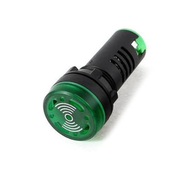 Modelo: AD16-22SM Tensão: 24V cc/ca Cor: Verde Medida do furo: Ø 22mm Sonoro: Buzzer Acustico: 80dB Iluminação: LED Grau de proteção IP65 Grau de proteção dos terminais: IP20 Material: Plástico Tipo: LED