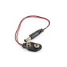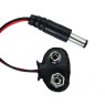 - Este Conector de Bateria conta em uma de suas extremidades com um conector ( clip ) para ligação com a bateria 9V e na outra com um plug P4 para conexão com o Arduino, por exemplo.