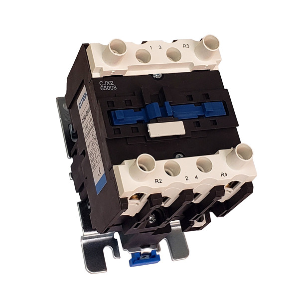 ESPECIFICAÇÕES DO CONTATOR CJX2-65008: Corrente nominal:.........................................................65A Potência máxima do motor (carga):..............................Em 220V, 4cv; em 380, 7,5cv e em 660V, 9cv Corrente térmica convencional (Ith): ............................80A Tensão máxima admissível nos contatos da carga (Ui): 690V Tensão da bobina do contator;...................................... 110V 50/60HZ Carcaça;.........................................................................Plástico