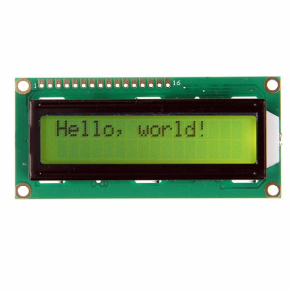Display LCD de 16 colunas por 2 linhas com backlight verde e escrita preta. Utilizado em projetos Arduino ou PIC para exibir informações aos usuários, opera com comunicação de 4bits ou 8bits e possui facil integração com qualquer microcontrolador, com várias bibliotecas fáceis de encontrar no mercado.