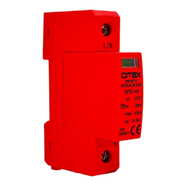 Dispositivo de Proteção contra Surtos (DPS), monopolar, Classe II (IEC 61643-1), do tipo limitador de tensão, composto por