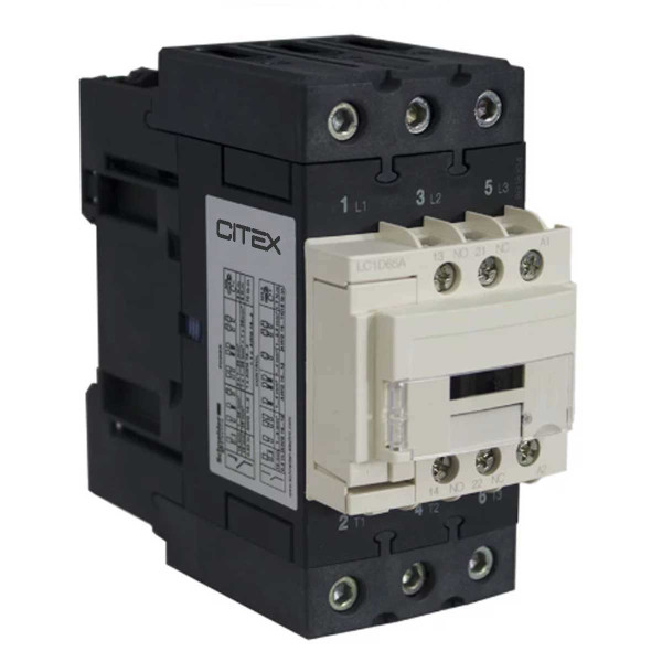 Contator tripolar, com 2 contatos auxiliares sendo 1 NA e 1 NF.