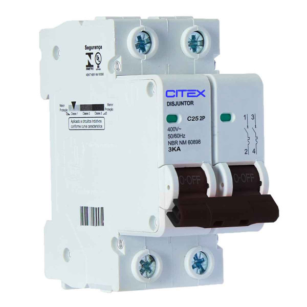 DISJUNTOR BIPOLAR DIN MDCI-3KA-2PC25 CURVA C 25A INMETRO (251)