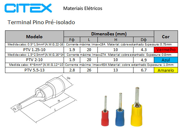 PTV5.5-13 TERMINAL PINO 13MM AM. FIO 4~6mm² pacote 100 PÇS. SKU.: 1024 R$41,99 em 4x de R$11,36 R$39,89 à vista (5% desc. à vista) Compre Agora Adicionar ao Favoritos Calcule o Frete Veja preços e prazos OK Não sei meu CEP! Detalhes do Produto TERMINAL PINO Modelo: PTV5.5-13Comprimento do pino: 13mmCor: AmareloFIO: 4~6mm²Pacote: 100 PÇS. Especificações e Conservação Cor Amarelo Marca CITEX