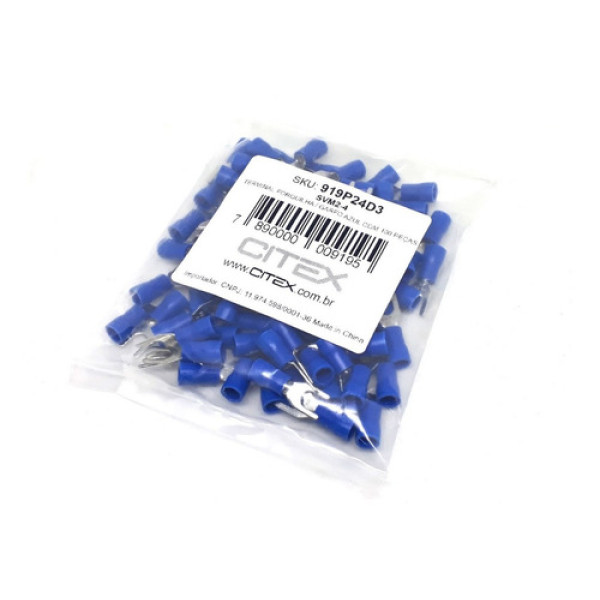 SVM2-4 TERMINAL GARFO AZUL 1,5-2,5mm² M4 COM 100 PEÇAS (919) SKU.: 919 Avise-me quando chegar Detalhes do Produto Cabo: 1.5 até 2.5mm² Parafuso: 4.3mm Corrente máximo: 27A Especificações e Conservação Cor Azul Marca CITEX
